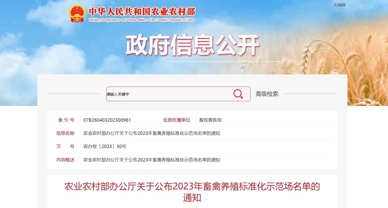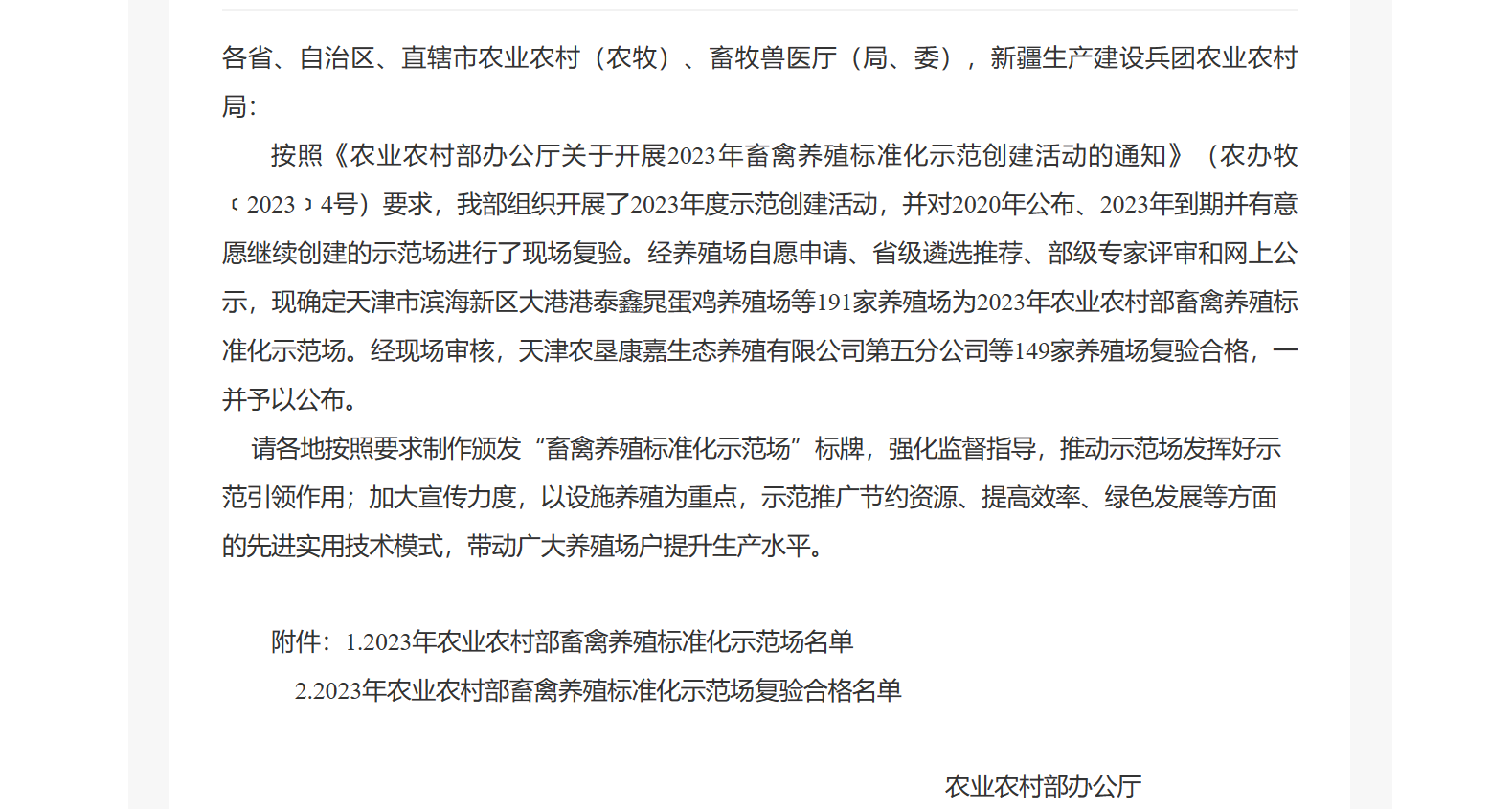 近日,農業農村部辦公廳公布了2023年全國191個畜禽養殖標準化示范場名單,鵬欣集團旗下鵬睿農牧中陳核心育種場正式獲批部級畜禽養殖標準化示范場。